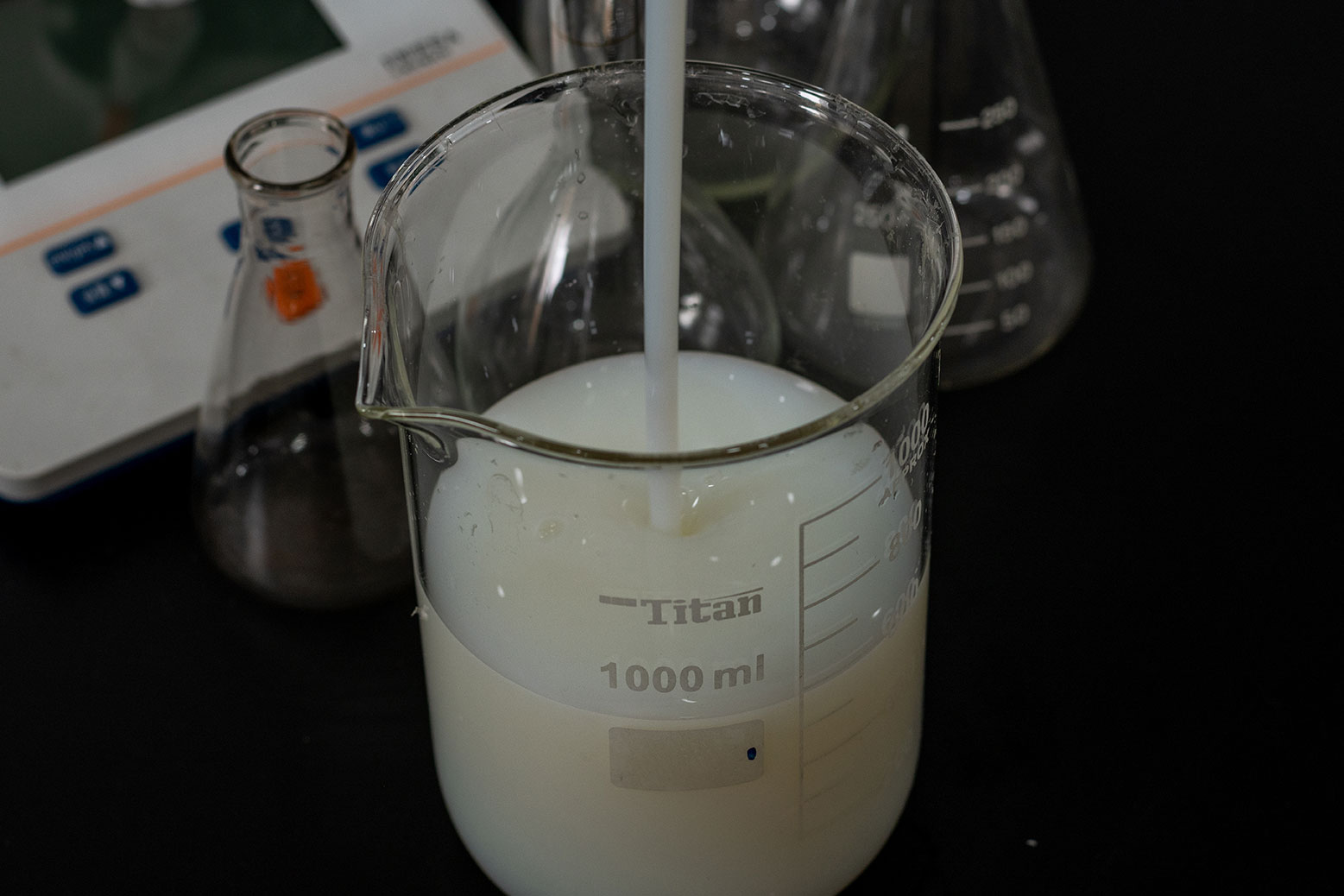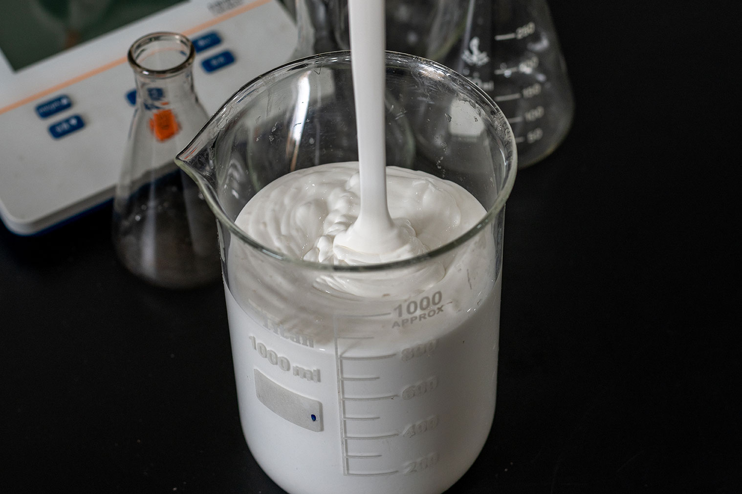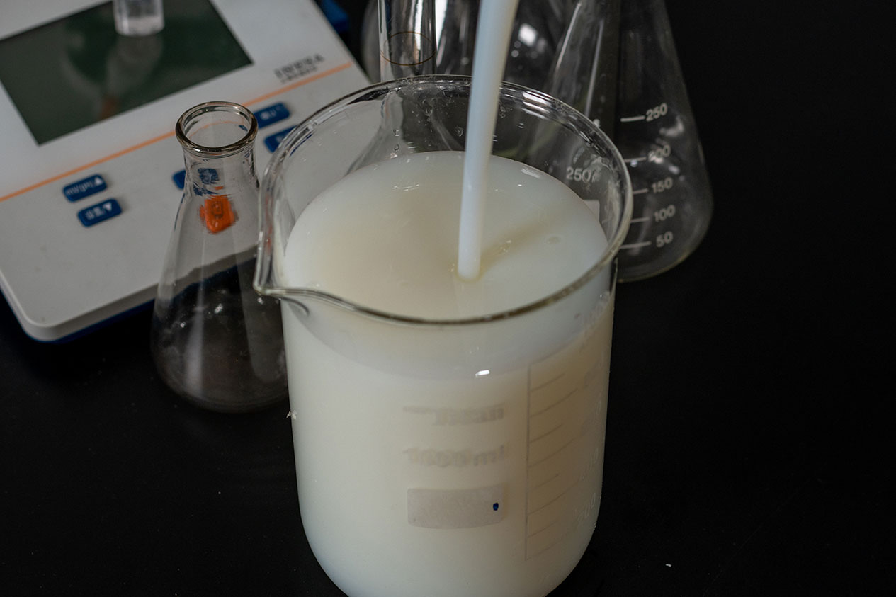 苯丙乳液是一種以苯乙烯、丙烯腈、丁二烯等聚合物為主要成分,以水為分散介質(zhì),通過(guò)乳化聚合制得的一種無(wú)毒、無(wú)味、環(huán)保的乳液。